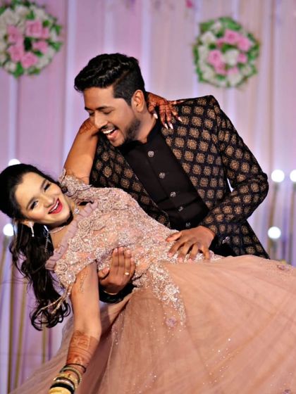 Couple coordinated outfits? No problem. We help you match for photos or functions - Indo-Western sherwani with ruffle gown, whatever vibe you want.