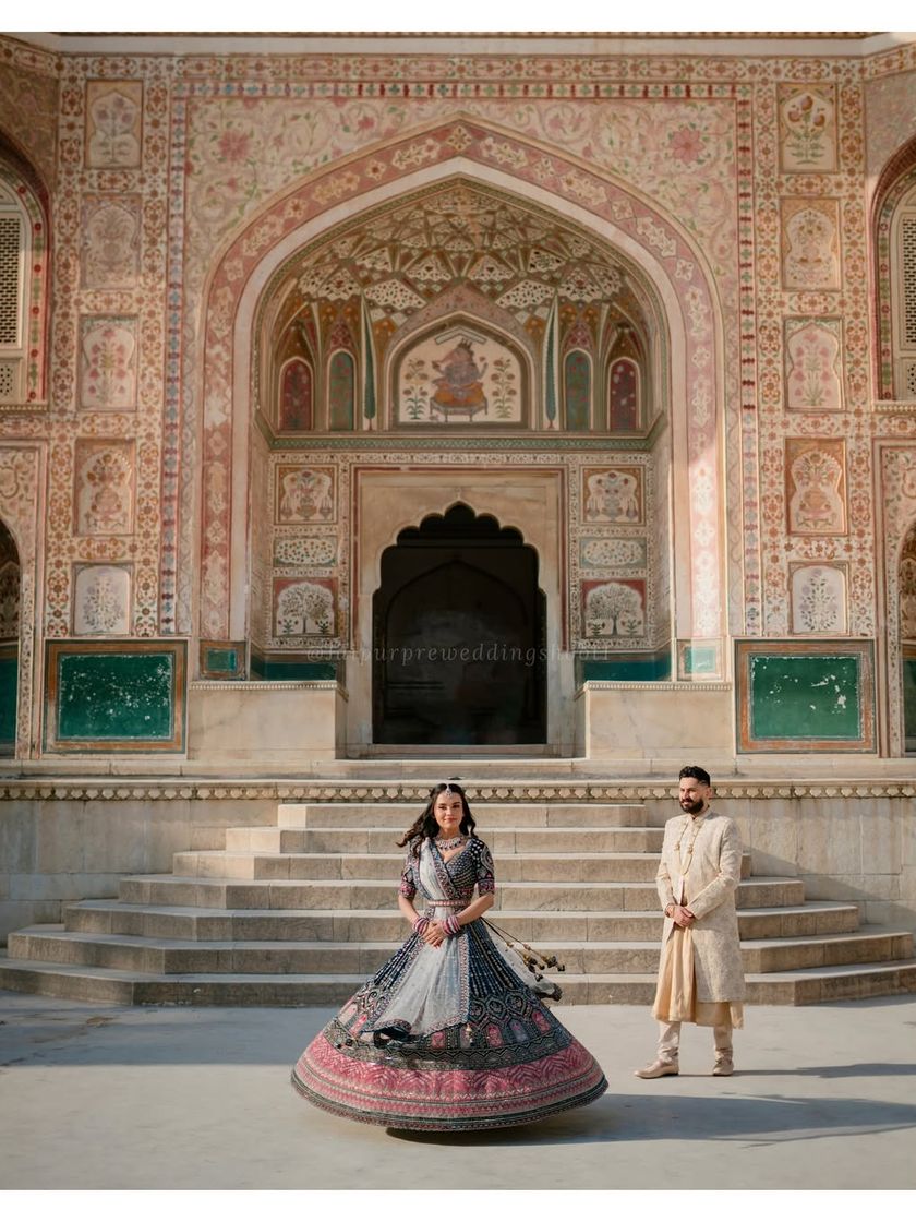 We specialize in shoots at Jaipur's majestic forts and palaces like Amer Fort and Nahargarh. We handle all the logistics to give you exclusive access, capturing your story amidst grand archways, intricate carvings, and historic courtyards for a truly royal pre-wedding album.