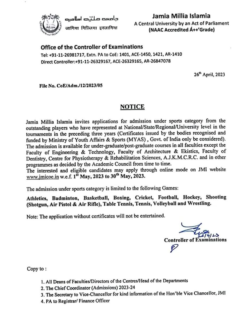 Here you will find all official announcements, admission lists, and guidelines for the Jamia sports quota. I keep this updated so you have the correct dates, eligibility criteria, and document requirements in one place, making the sports quota admission process clear and straightforward.
