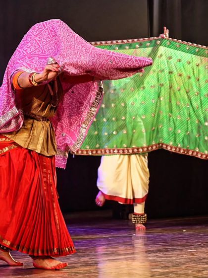 With my troupe 'Abhinayaa', we take on bigger, more thematic dance productions. My students and I love trying new things - like blending dance with digital art and even AI (yes, seriously!). We’ve done everything from a multimedia Bharatanatyam performance about Indian textiles to sci-fi dance operas and shows with a live orchestra Bharatanatyam show vibe.