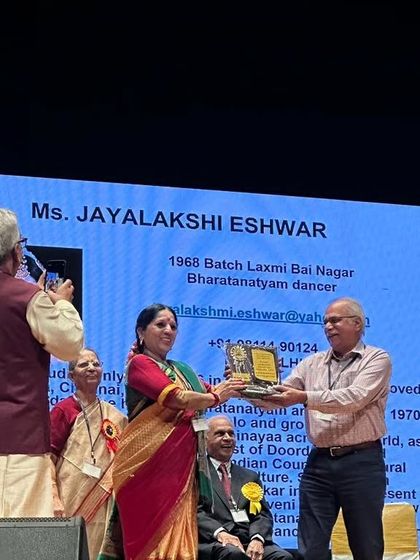 Namaskar! I’m Jayalakshmi Eshwar. Born in Delhi, found my soul in Kalakshetra, Chennai. My guru, Attai, Smt. Rukmini Devi Arundale, shaped everything I do – I dedicate every award to her and my parents. My dance has taken me everywhere, met so many lovely folks. My son, Avinash, adds magic with visuals to my shows. I love mixing old-school Bharatanatyam with new ideas. Away from the stage, you’ll find me chilling in Goa with my dog, just soaking it all in.