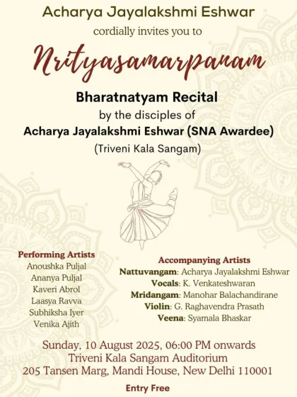 Dance is a bridge between cultures. I cherish opportunities to choreograph for diplomatic events and conduct workshops that blend Bharatanatyam with other global art forms, creating a unique and enriching cross-cultural dialogue.