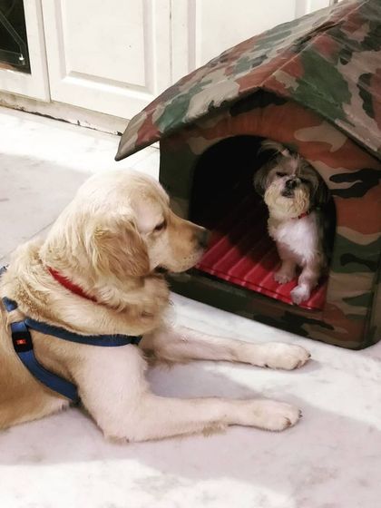 No cages, just cozy corners - Dogs live with us, find their favourite chair, nap spot, and follow us around the house.