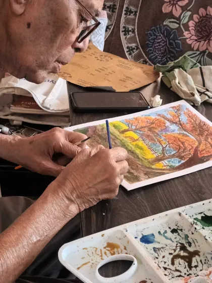 Hi, I’m Jeeva. You know, art’s been my thing forever, but teaching it to folks - that’s something else. My students? From little ones to grandpas, everyone’s got a spot here. Seriously, Aryan’s charcoal drawing at 14 and Prafulla sir’s watercolour at 85 - both make me grin. My daughter’s an artist too, and her work even made it to the National Art Exhibition! Travel, workshops, meeting new artists, especially women - all that keeps me inspired and buzzing.