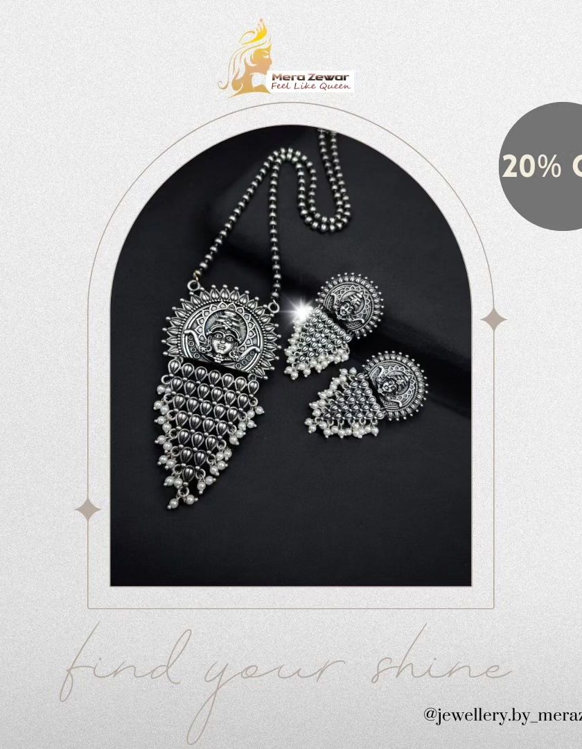 Whether you need a light stone set for a party or a heavy choker for a wedding, you'll find it here. Most of my necklace sets are designed to be a complete solution, coming with matching earrings and a Maang Tikka. I offer a wide range of styles, from oxidized silver sets for an ethnic look to sparkling American Diamond and stone sets for a touch of glamour.