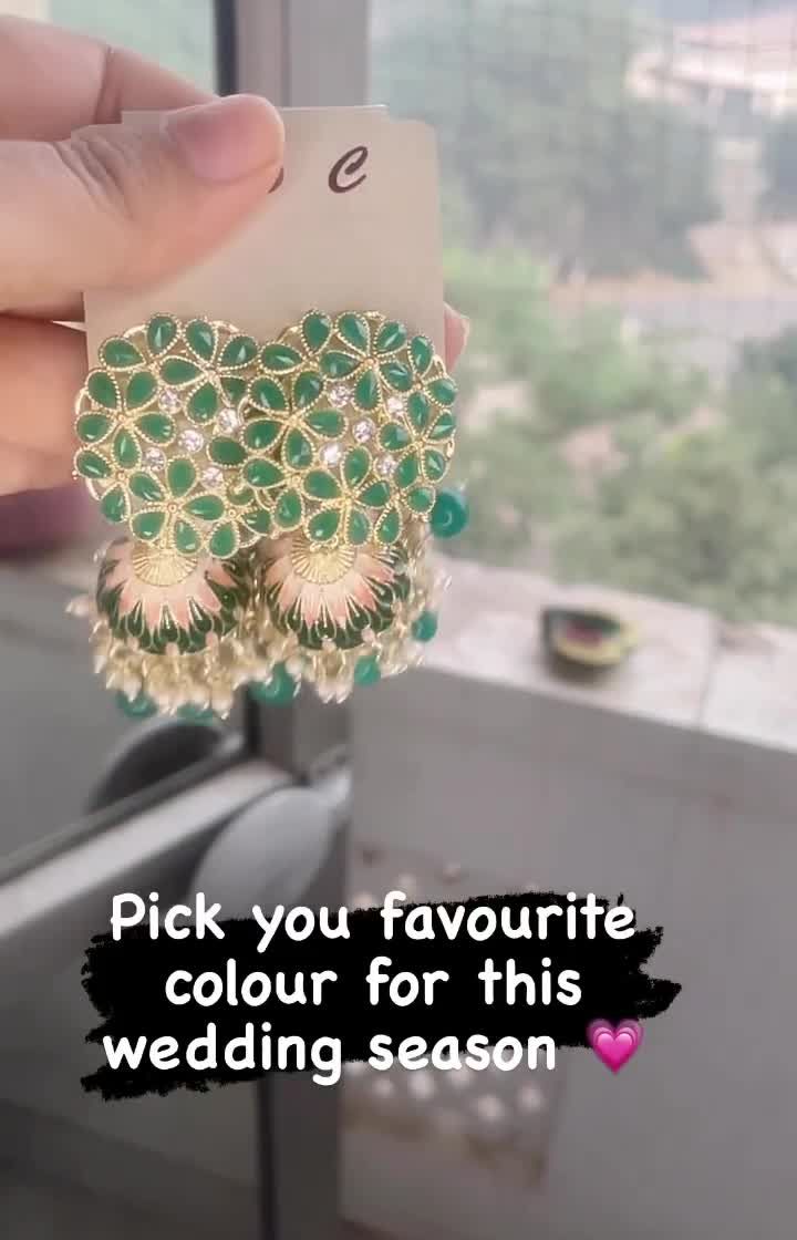 Explore my handpicked collection of vibrant Meenakari jhumkas, perfect for adding a splash of color to any look. I have a variety of designs, from floral studs to classic domes, in every shade you can imagine.