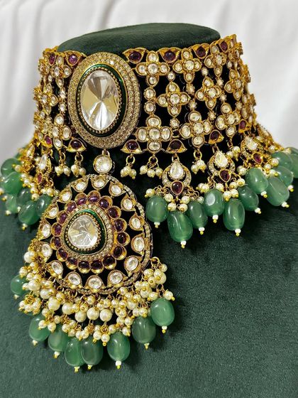 Jewellery on Rent - We rent out imitation bridal jewellery - Kundan, Polki, diamond chokers, earrings, and hair choti for weddings and events.