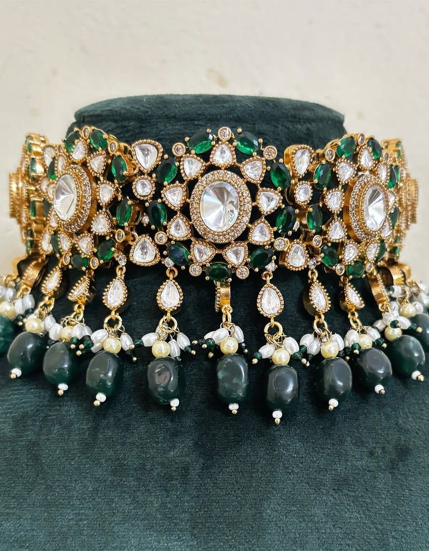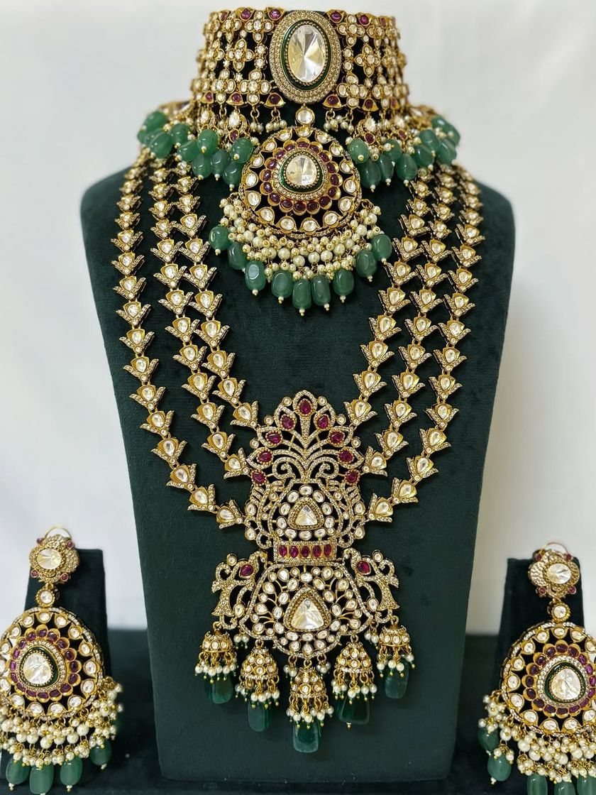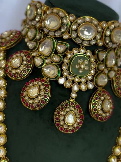My collection of full bridal sets, featuring traditional Kundan, Polki, and Meenakari work. These imitation jewellery sets include everything from chokers and Rani Haars to matching earrings, all available for rent in Mumbai.