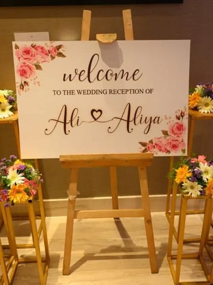 - We bring all the materials, from big floral stage decoration setups to tiny details like custom welcome banners.