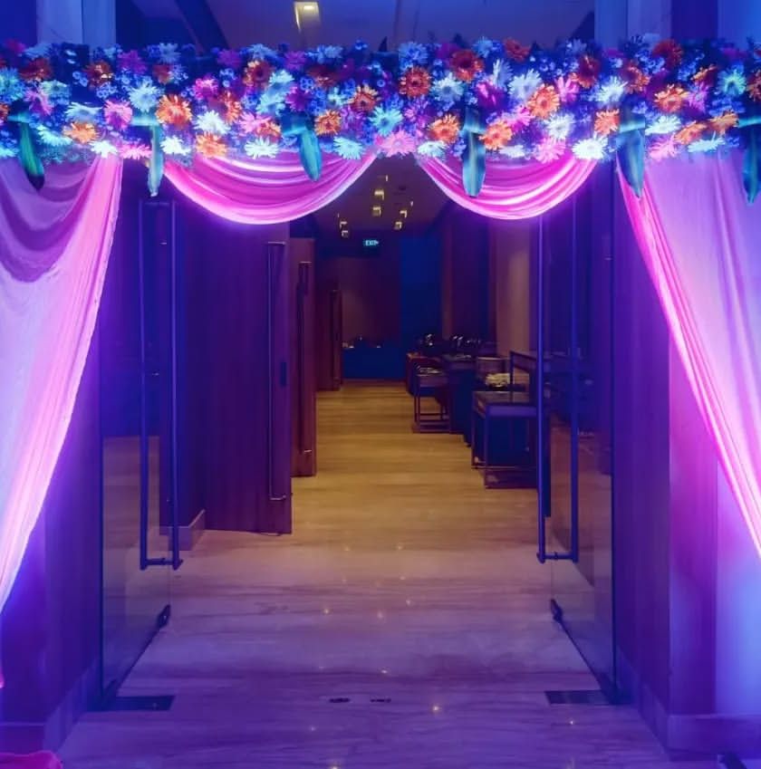 We create a memorable first impression for your guests. Our services include elegant floral entrance arches with custom lighting and personalized welcome signs that set the tone for your celebration.
