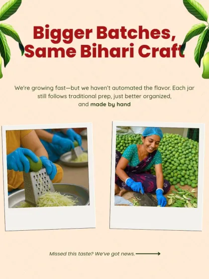 We make chunky Bihari chutneys in small batches using old family recipes, local ingredients, and no preservatives.