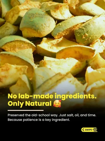 We follow the timeless traditions of our grandmothers. Our pickles are made without machines or artificial preservatives, using fresh, seasonal ingredients sourced from local farmers and slow-cooked in pure mustard oil.