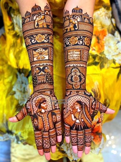 I make custom bridal mehndi with your story, use only natural henna, and come to your home anywhere in India.
