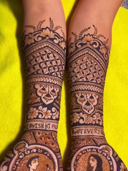 I make custom bridal mehndi with your story, use only natural henna, and come to your home anywhere in India.