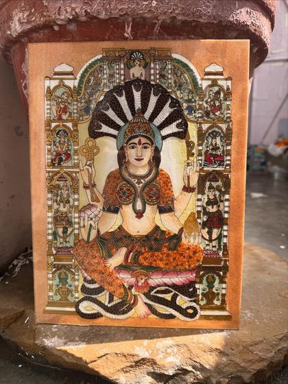 I make handmade paintings of Hindu deities using real semi-precious stones for pooja rooms and meditation corners.