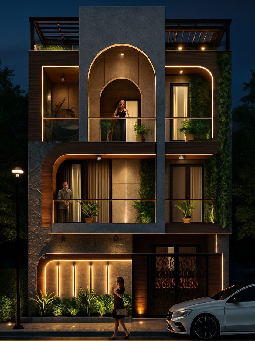 A building's exterior is its first impression. We design facades for residential and commercial properties across Delhi NCR, focusing on modern aesthetics, durability, and smart use of materials like stone, wood panels, and architectural lighting. Whether it's a new build or a renovation, we ensure the design is both striking and practical.