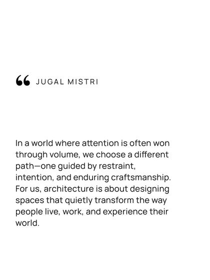 My work in dense urban environments like Mumbai focuses on creating a dialogue between the building, its streetscape, and the city skyline. These projects, from luxury penthouses to commercial towers, reinterpret historical context with a contemporary edge, shaping spaces that are both functional and culturally resonant.