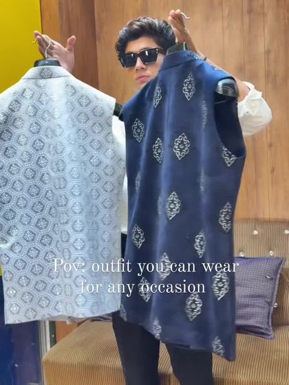 This is where tradition meets my signature attitude. I design custom Jodhpuri, Bandhgala, and Indo-Western jackets with intricate details like mirror work, thread work, and bold embroidery. Each piece is a statement, perfect for weddings, sangeets, and festivals.