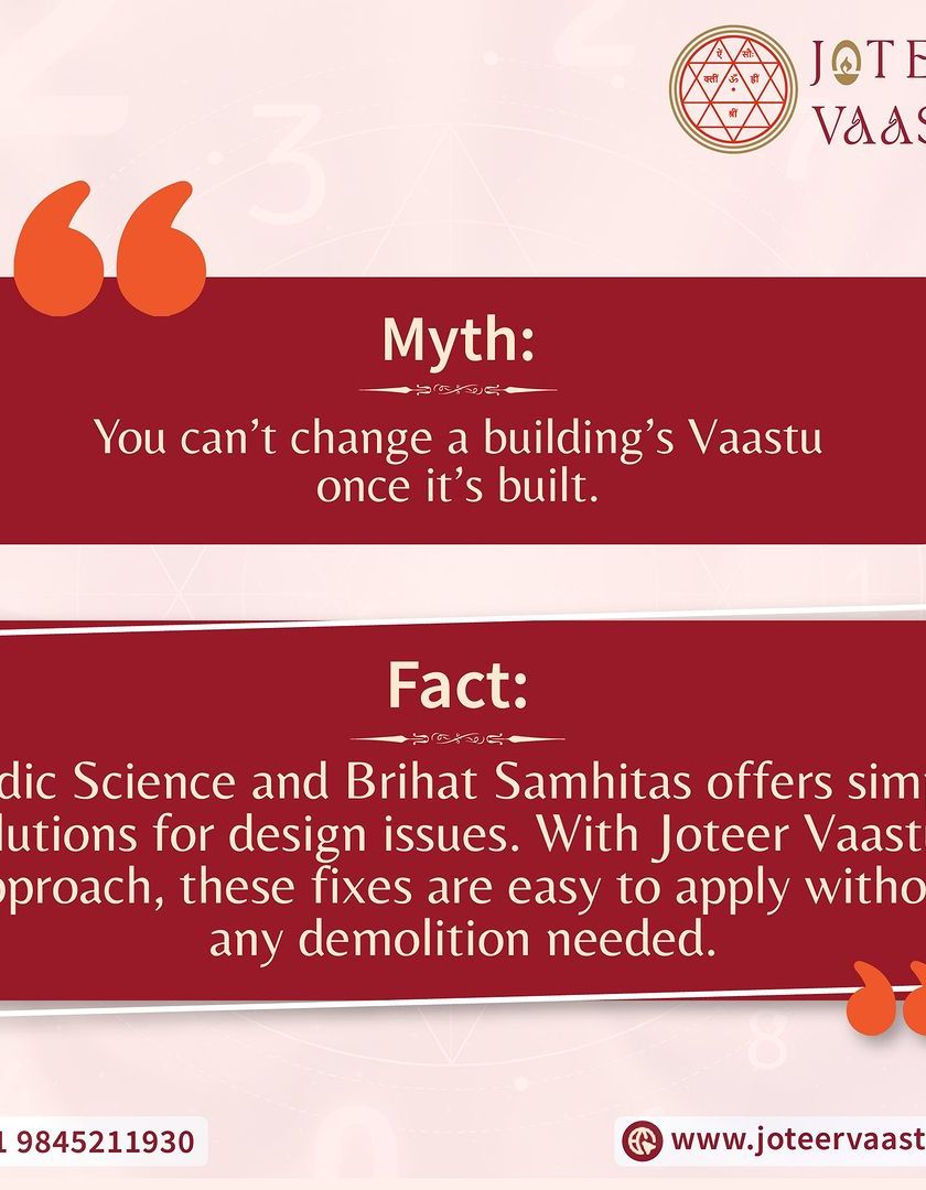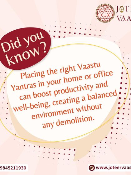 We specialize in correcting Vaastu defects without any structural changes or demolition. Our scientific method uses powerful, energized Vedic Yantras to re-balance your space, preserving its architecture while enhancing its energy.