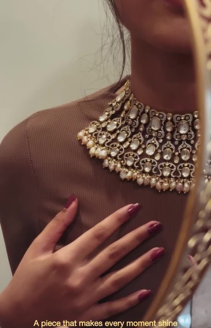 Explore my collection of necklaces, designed to be the focal point of any ensemble. Discover everything from intricate polki chokers for a bridal look to bold, layered heritage pieces that can be styled in contemporary ways.