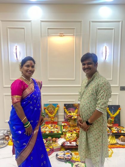 For us, a project is complete only when we see the client's happy face during their Griha Pravesh. This is the most rewarding part of our work, seeing families start their new chapter in a home filled with positivity and joy.