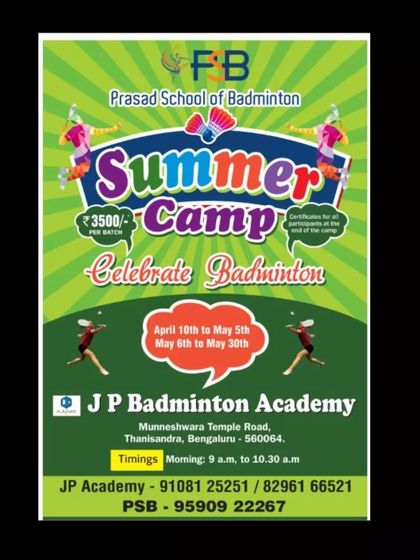 Namaskara! We’re JP Badminton Academy, not just coaches but a loud, mad bunch spread across Bangalore. You’ll hear us shouting ‘Go go go!’ and cheering for every kid who picks up a racquet. Our happiest moments? Watching tiny tots learn their first stroke and our champs bagging medals. We love celebrating Kannada Rajyotsava with as much dhamaal (fun) as any finals. For us, badminton is all about making friends, having fun, and pushing hard on court.