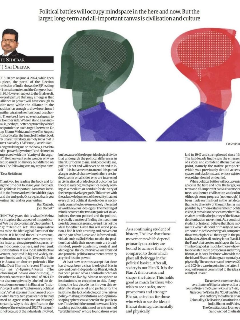Through my regular column #TheSidebar in The Indian Express and other publications, I apply a decolonial lens to contemporary events. I analyze topics ranging from the origins of 'caste' and 'Dravidianism' to constitutional matters and the perception of justice.