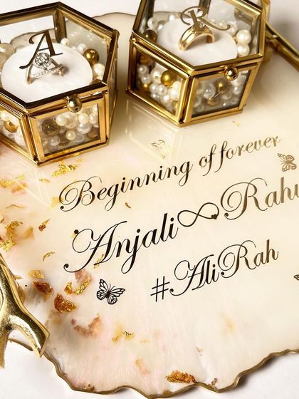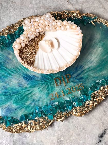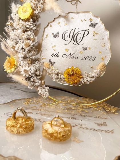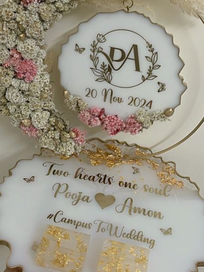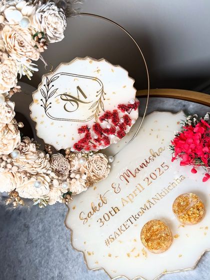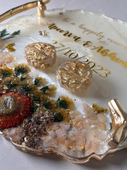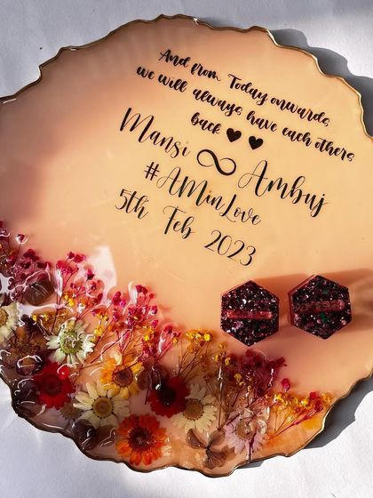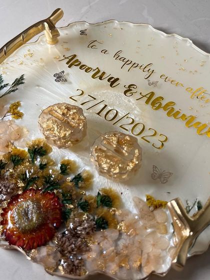 Handmade Resin Gifts & Keepsakes - I make ring platters, custom resin wedding invites, varmala resin preservation, pooja thalis, wall clocks and cute fridge magnet gifts.