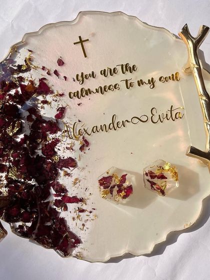After your big day, the platter isn’t just packed away. It becomes something you’ll see and use at home - a resin keepsake wedding platter that holds your memories.