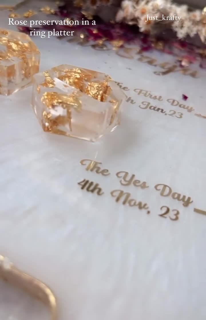 Don't let your special flowers wilt away. I can preserve your wedding varmala, bouquet, or other sentimental flowers and incorporate them into a beautiful resin ring platter or pooja thali, creating a memory you can cherish forever.