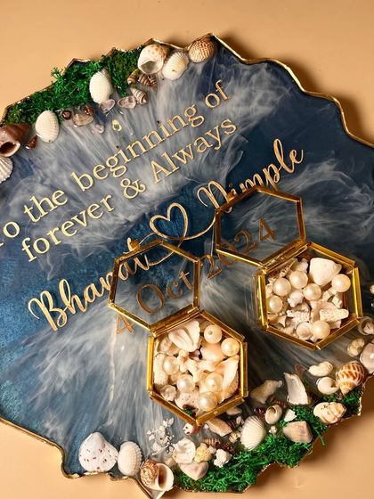 Handmade Resin Gifts & Keepsakes - I make ring platters, custom resin wedding invites, varmala resin preservation, pooja thalis, wall clocks and cute fridge magnet gifts.