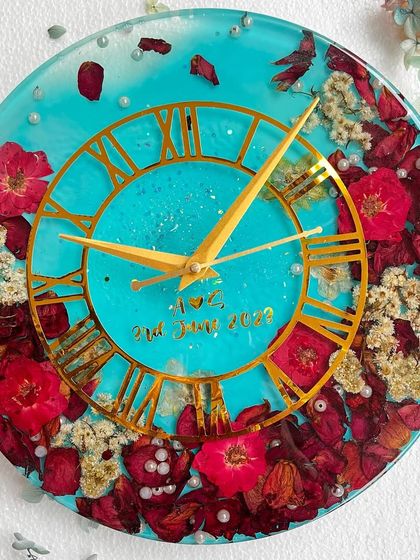 Handmade Resin Gifts & Keepsakes - I make ring platters, custom resin wedding invites, varmala resin preservation, pooja thalis, wall clocks and cute fridge magnet gifts.