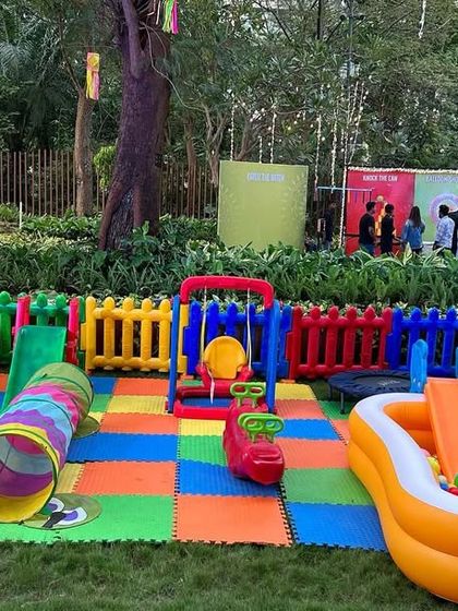 I can set up a complete, fenced-in soft play area on lawns and in gardens. These setups are perfect for larger birthday parties and outdoor events, providing a safe and fun environment for toddlers.