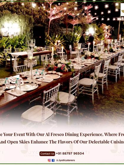 We’re Jyoti Caterers, Mumbai ka asli taste. Food, for us, is not just khaana (food), it’s how families and friends bond, how memories are made. Our motto - Food That Celebrates Life - is what we live by. Every event is a canvas, and we splash it with Mumbai’s rich vibes, rustic charm, royal themes, and loads of love. We don’t just serve food, we create moments. Come for the taste, stay for the magic.