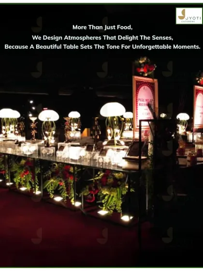 We’re Jyoti Caterers, Mumbai ka asli taste. Food, for us, is not just khaana (food), it’s how families and friends bond, how memories are made. Our motto - Food That Celebrates Life - is what we live by. Every event is a canvas, and we splash it with Mumbai’s rich vibes, rustic charm, royal themes, and loads of love. We don’t just serve food, we create moments. Come for the taste, stay for the magic.