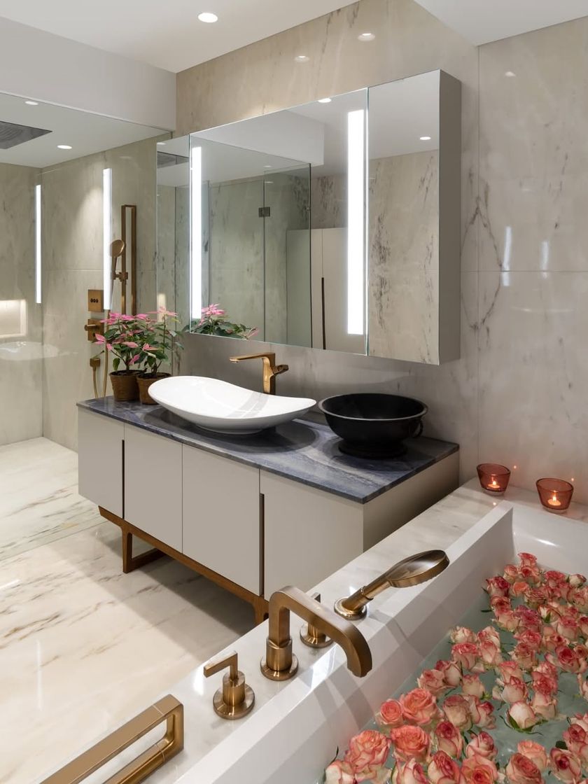 We treat utilitarian spaces like kitchens and bathrooms as opportunities for detailed design and material expression. By combining high-performance fixtures with rich textures like marble, brass, and wood, we transform these functional areas into luxurious, jewel-box environments.
