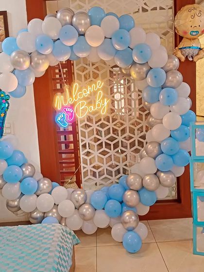 We set up custom balloon and theme decorations for all baby events like baby showers, chhatthi, Annaprashan, and homecomings, with options to personalize and fit your space and budget.