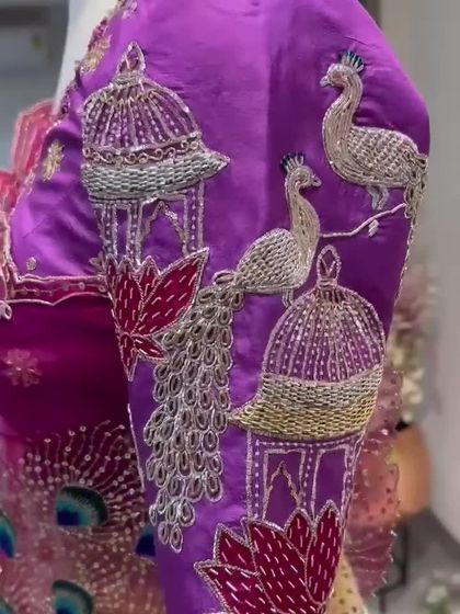 Every piece is handmade with attention to detail. You’ll find Zardosi, sequins, pearls, and aari work on luxe fabrics like velvet and brocade. I love motifs - lotuses, peacocks, elephants - inspired by tradition and nature.