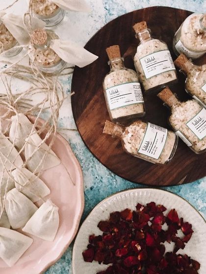 We craft therapeutic bath salts using a blend of Epsom salt, Dead Sea salt, and Pink Himalayan salt. Our formulation promotes deep skin hydration, natural detoxification, and muscle relaxation.