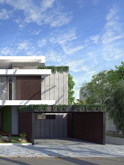 We design homes, apartments, and commercial buildings in Bangalore, with a focus on facades and on-site involvement from sketches to 3D renders, using materials like brick, corten, and wood for lasting results.