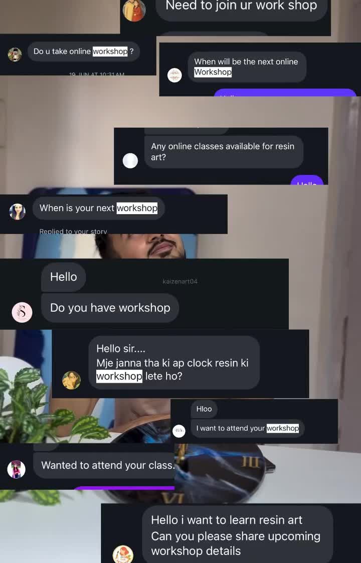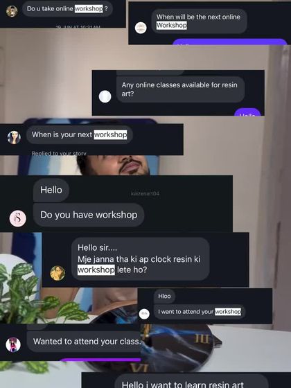 Join my live online workshops from anywhere. I offer detailed, watch-and-learn sessions on Zoom covering everything from wall clocks to ocean art, where I share all my techniques, material sources, and finishing secrets. You'll also get a recording of the session to rewatch anytime.