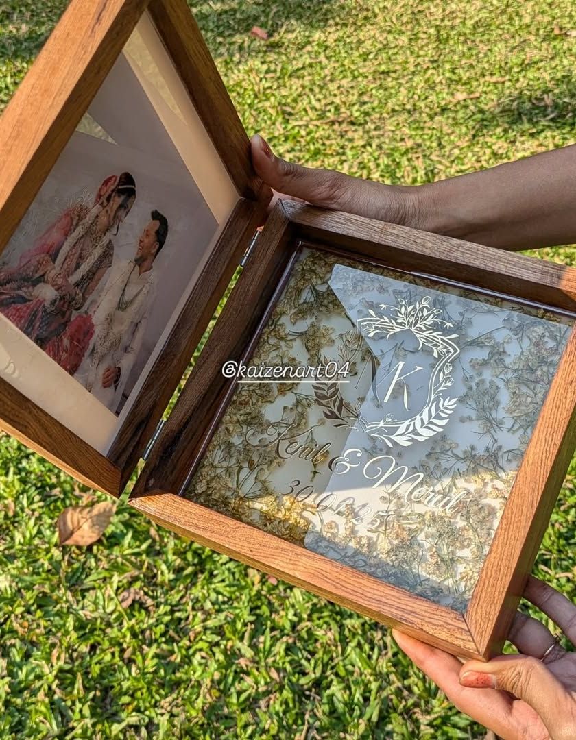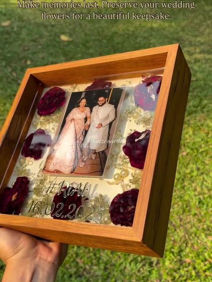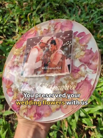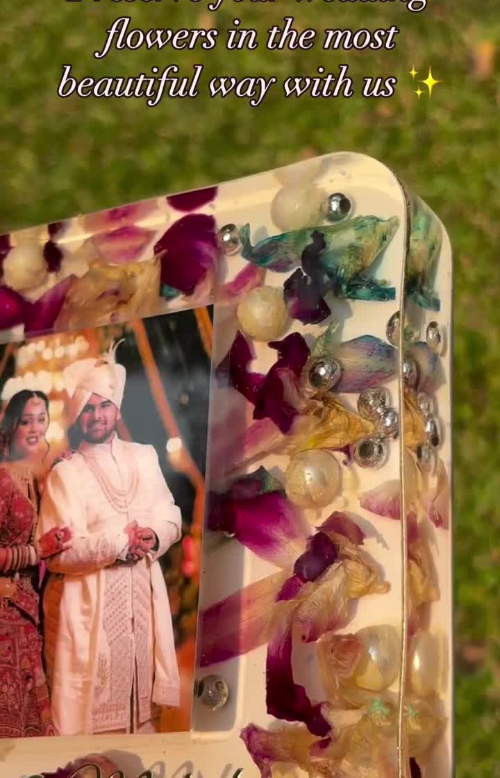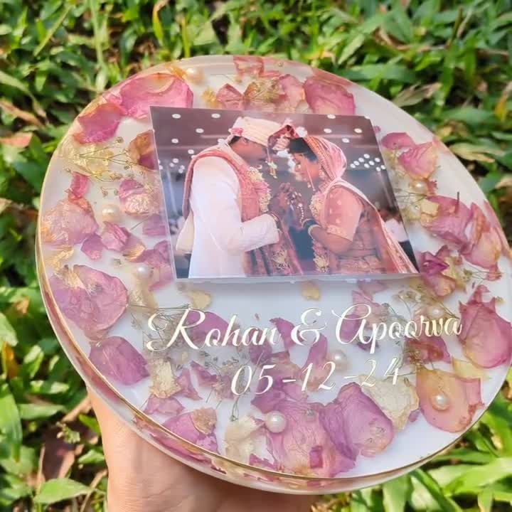 This is my core service, turning your wedding varmalas and bouquets into beautiful, solid resin keepsakes. I can customize these blocks in various shapes like square, circle, or hexagon, and add your photos, names, dates, or even special hashtags to make it uniquely yours.