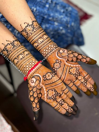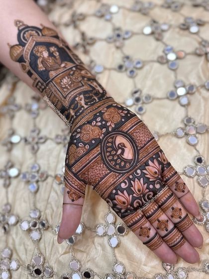 Your wedding henna is a story, and I am here to tell it. I specialize in creating detailed, personalized bridal designs that include everything from couple portraits and names to symbols that are meaningful to you, using traditional motifs like peacocks, elephants, and palaces.
