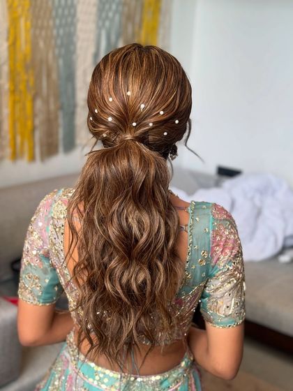 Your hair is the frame for your entire look, and we style it to perfection. We specialize in a variety of stunning hairstyles, including romantic soft waves, intricate floral braids, chic messy ponytails, and elegant updos, often adorned with unique accessories.