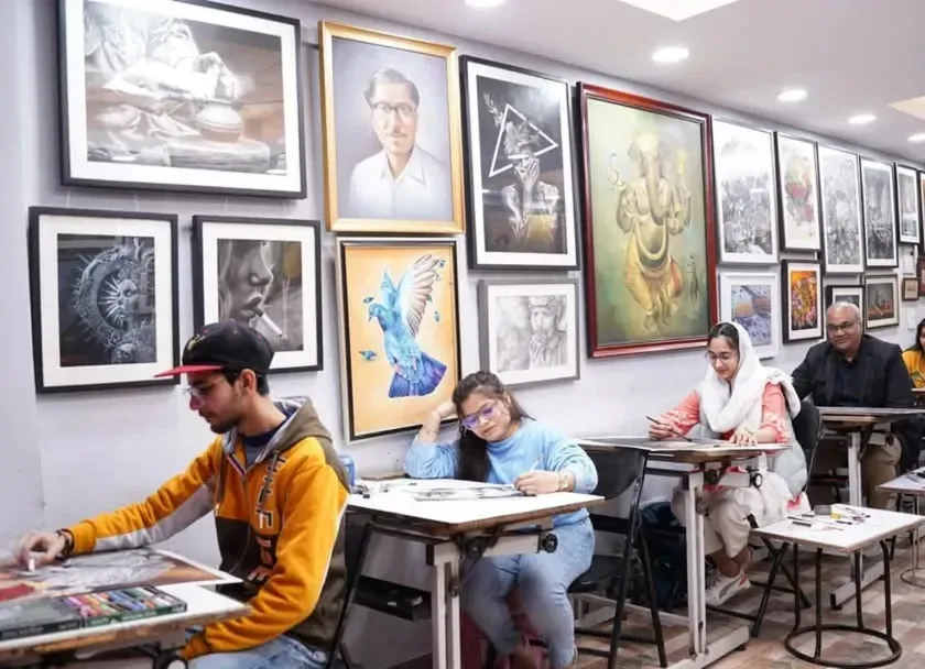 We provide specialized coaching to help students crack entrance exams for top art and design colleges like the College of Arts, Jamia Millia Islamia, and BHU. Our curriculum covers all required topics, including still life, composition, and figure drawing.
