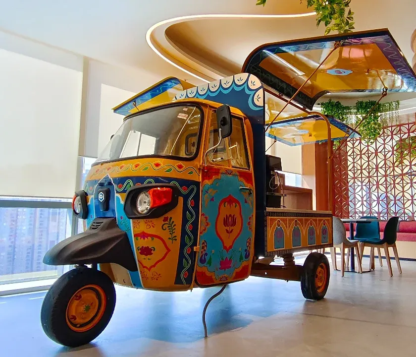 We believe ordinary objects hold extraordinary potential. This project showcases how we transformed a standard auto-rickshaw into a vibrant, hand-painted art installation for an office cafeteria, inspired by Indian truck art.