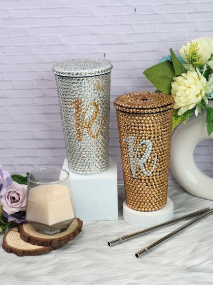 Sip in style with our collection of custom drinkware. From dazzling bling tumblers and sleek stainless steel bottles to elegant wine glasses and fun coffee mugs, we can personalize any piece with your name, initials, or a unique design.