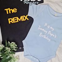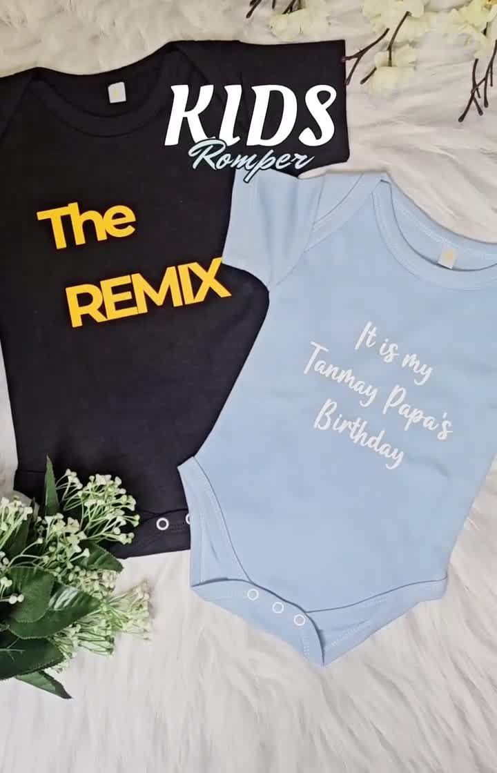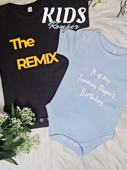 We create adorable personalized gifts for the youngest members of your tribe. Our collection includes custom-printed baby rompers for special occasions, fun "Original/Remix" t-shirt sets for families, and a variety of cute and playful Rakhis for kids.