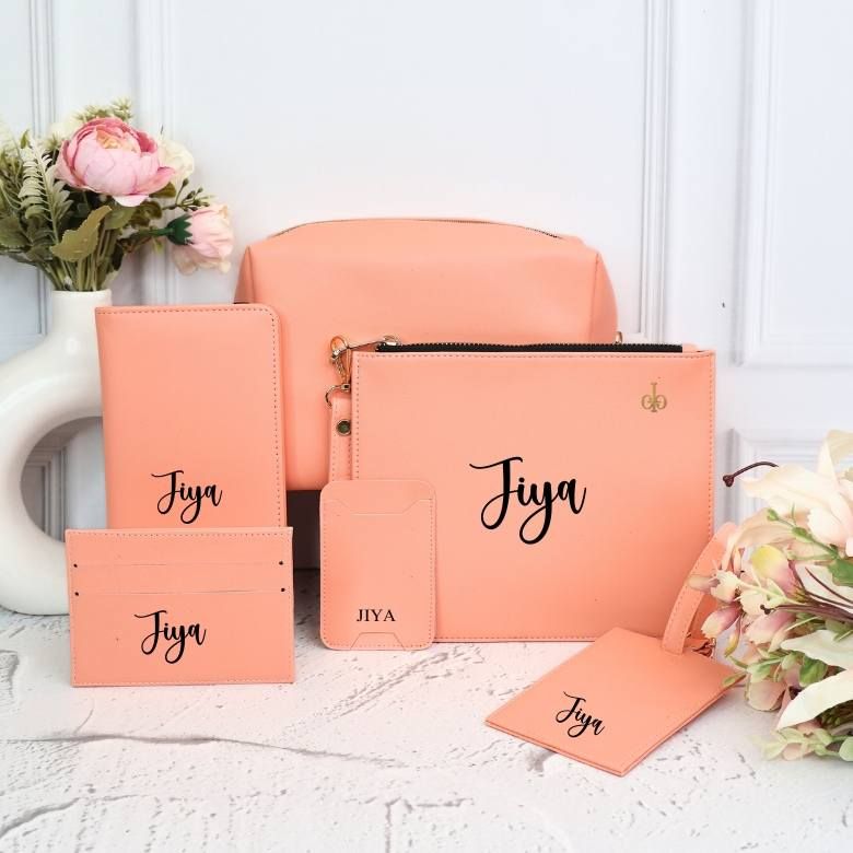 Keep your essentials organized in style with our range of personalized bags and pouches. We offer everything from makeup vanity cases and quilted pouches to trendy tiffin bags and jewelry organizers, all customizable with your name or initials.