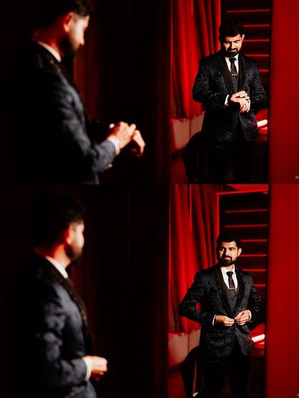 The groom's story is an essential part of the wedding narrative. I make sure to capture the groom's style and personality, whether he's in a traditional veshti, a sharp tuxedo, or a stylish sherwani. This gallery is dedicated to the moments that define the groom's journey.